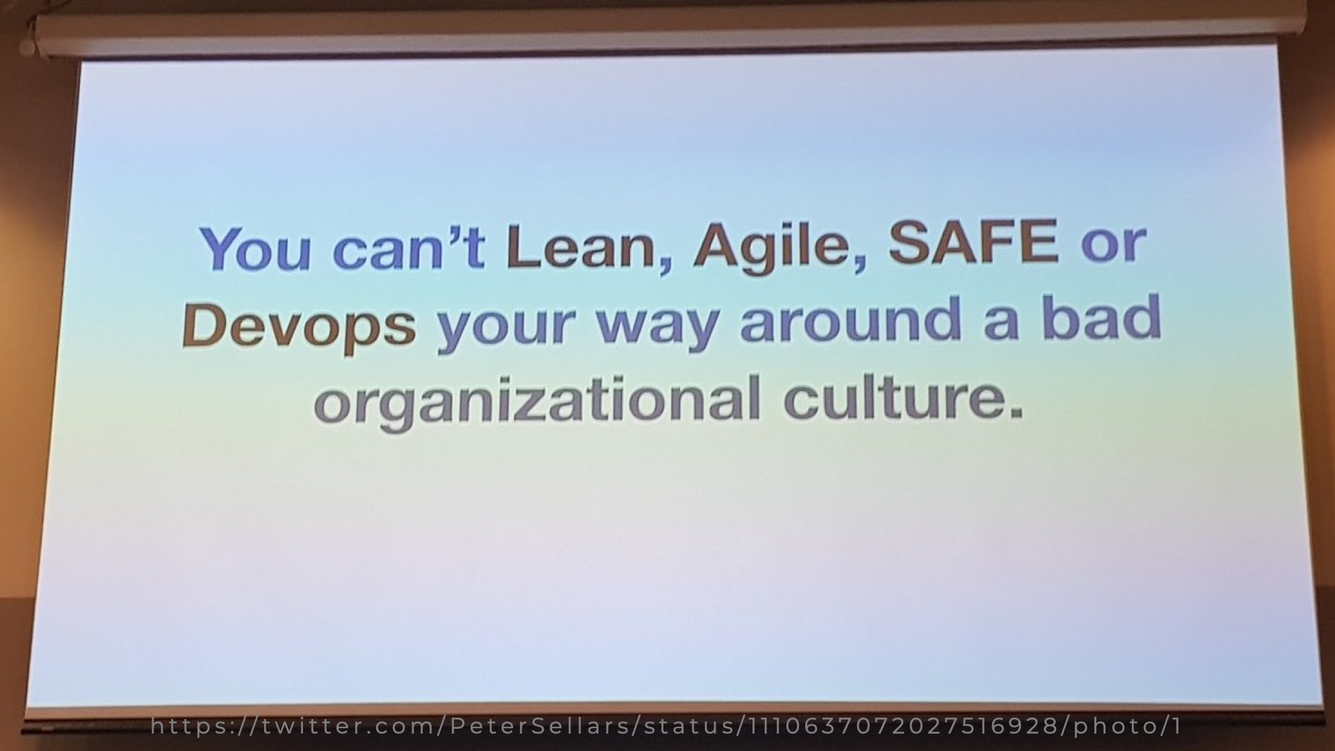 You can’t Lean, Agile, SAFE or Devops your way around a bad organizational culture.: SLIDE: You can’t Lean…