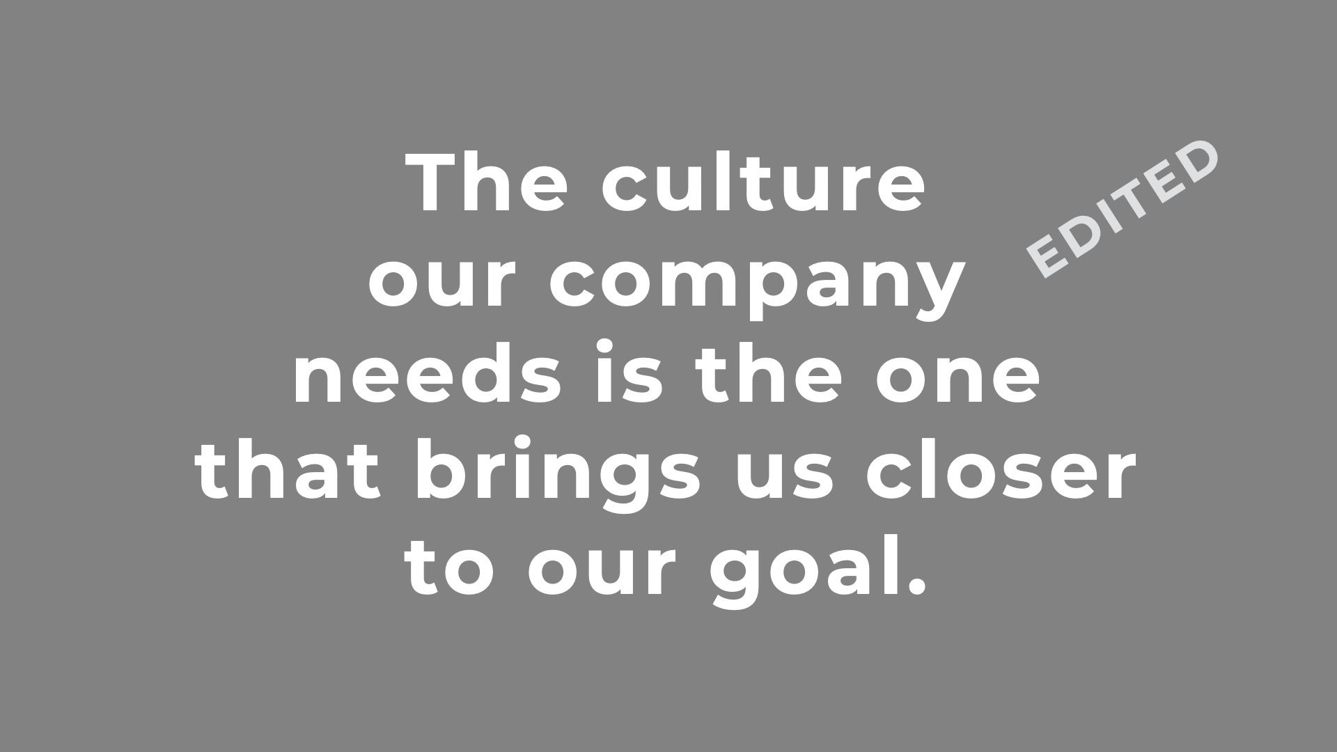 The culture our company needs is the one that brings us closer to our goal.: SLIDE: The culture that our company needs…