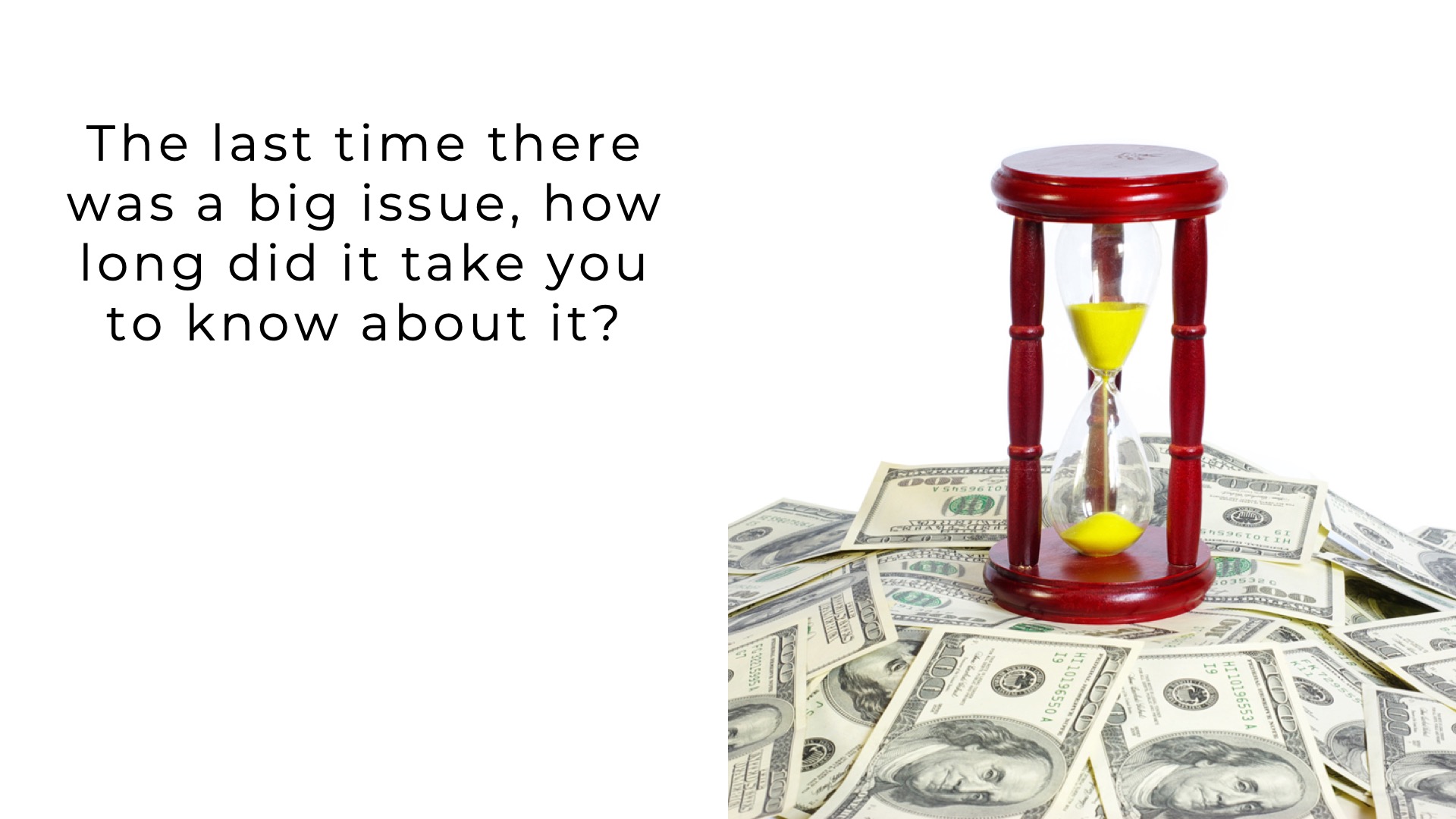 If you are in management, “The last time there was a big issue, how long did it take you to know about it?”: SLIDE: First clock