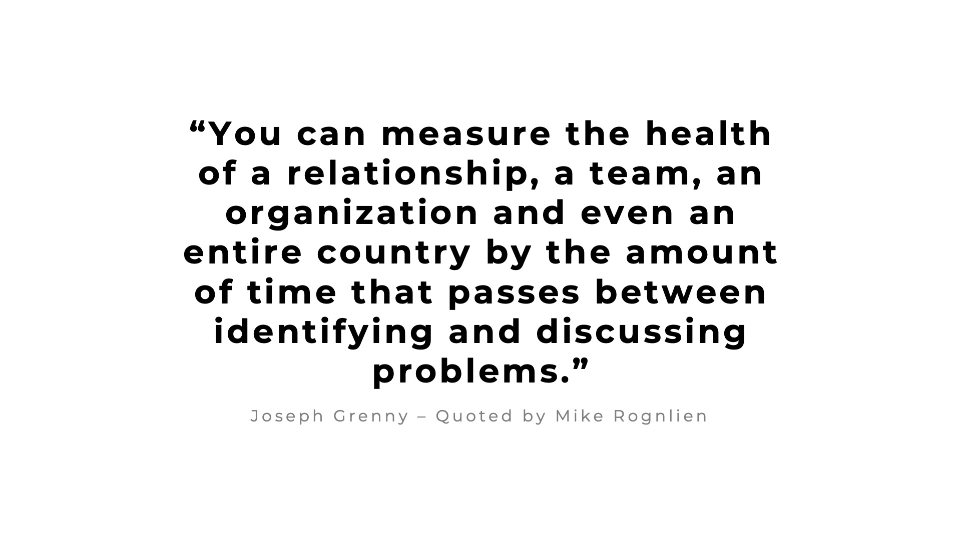 So, then ,what is our excuse for putting off discussing problems? Whether in our relationships, teams, organizations, or country?: SLIDE: What is our excuse…?