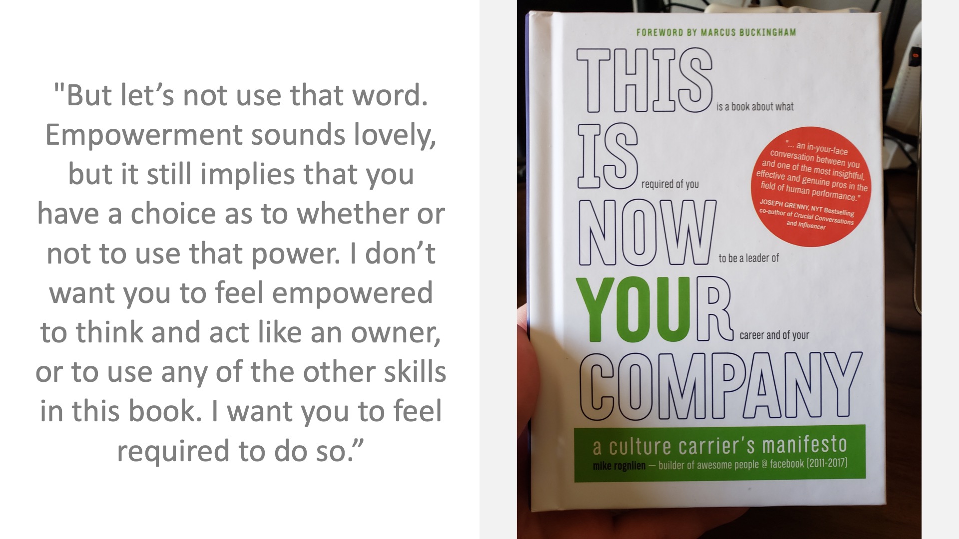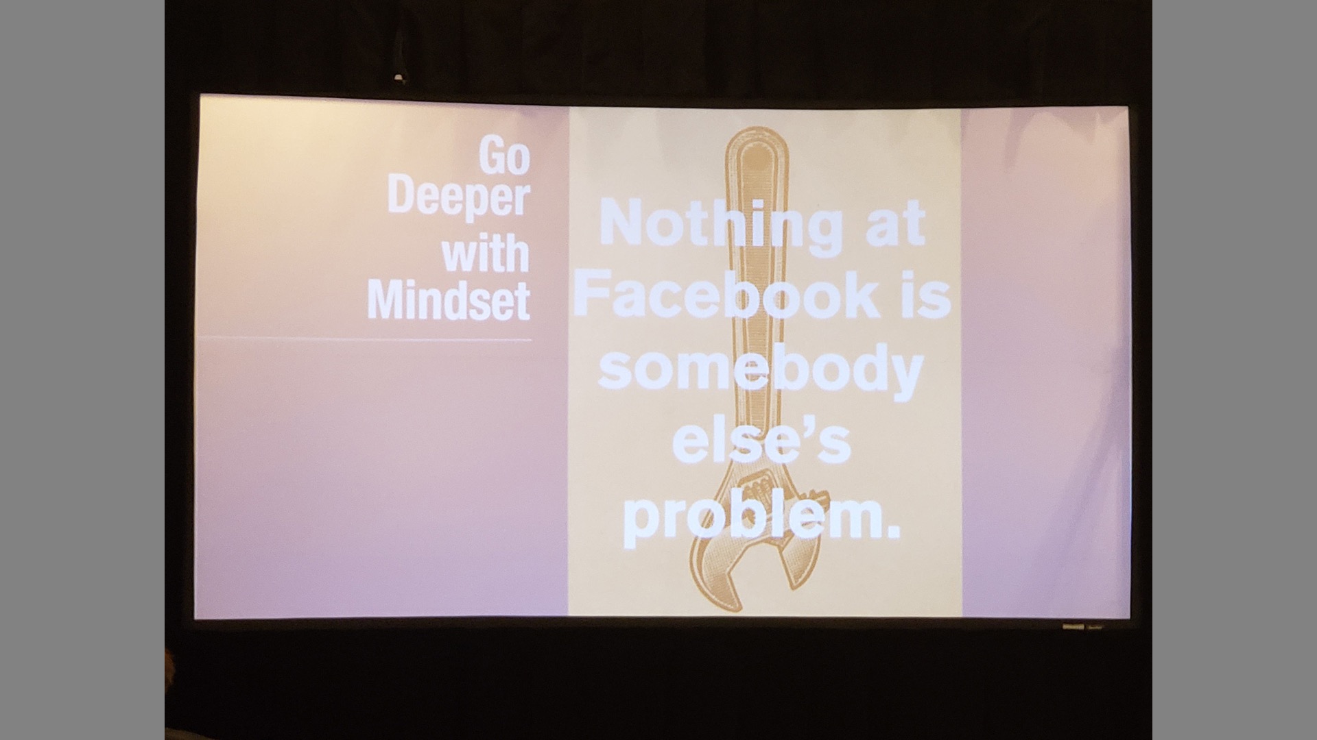 Mike told a story about a new Facebook employee…that I’ll refer to as a n00b to keep this very IT-ish…who spoke up at a weekly open, hour-long all-company Q & A session with Mark Zuckerberg and other senior leadership. She asked Mark a question directly…