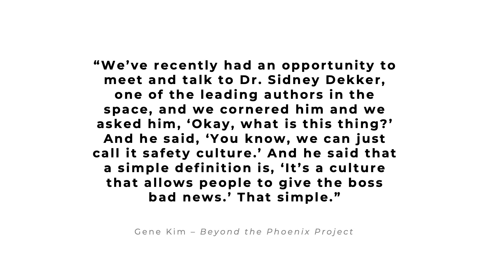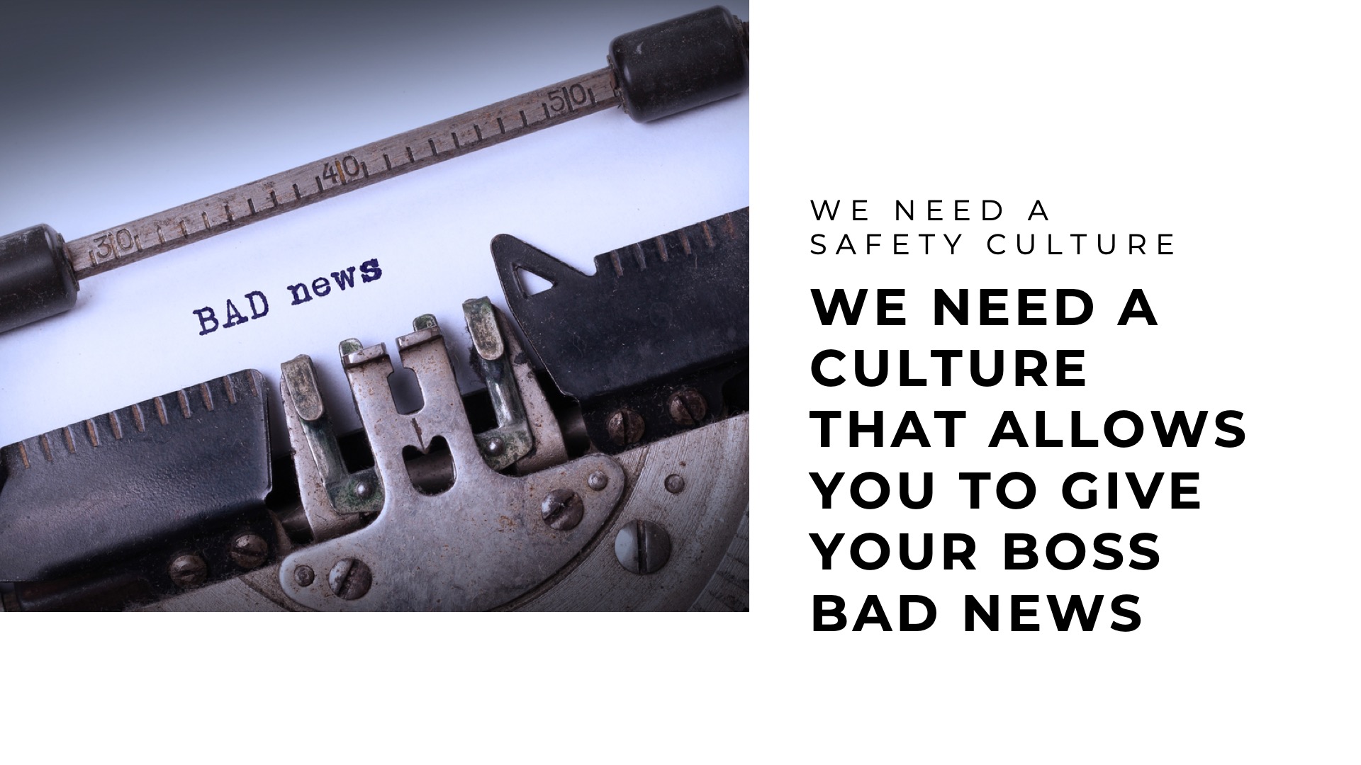 - Our company needs a safety culture, which is a culture that allows you to give your boss bad news.