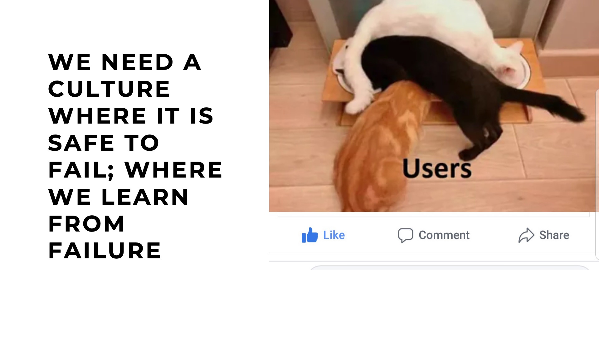 We need a culture where it is safe to fail; where we learn from failure.: SLIDE: Just the cats