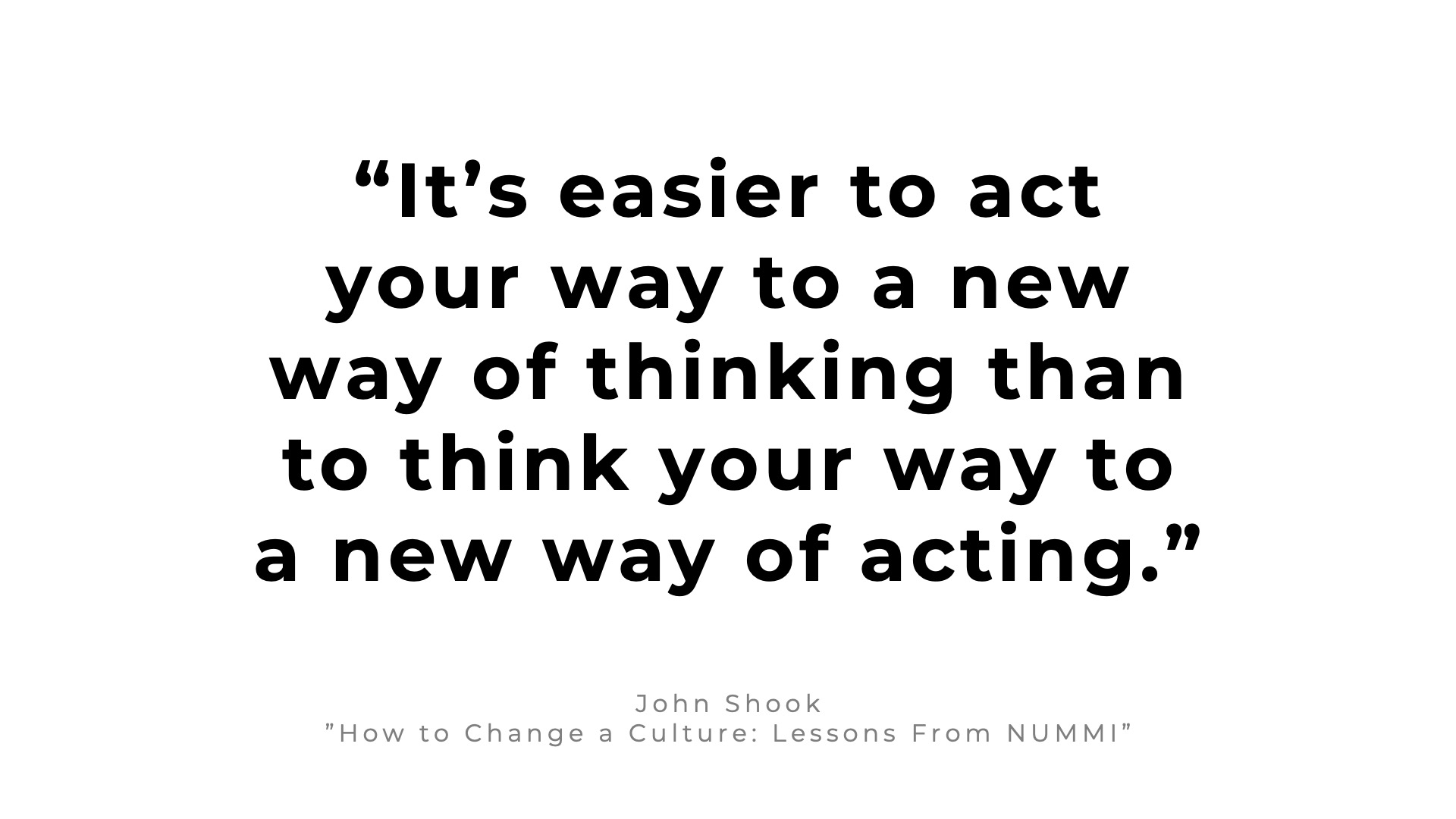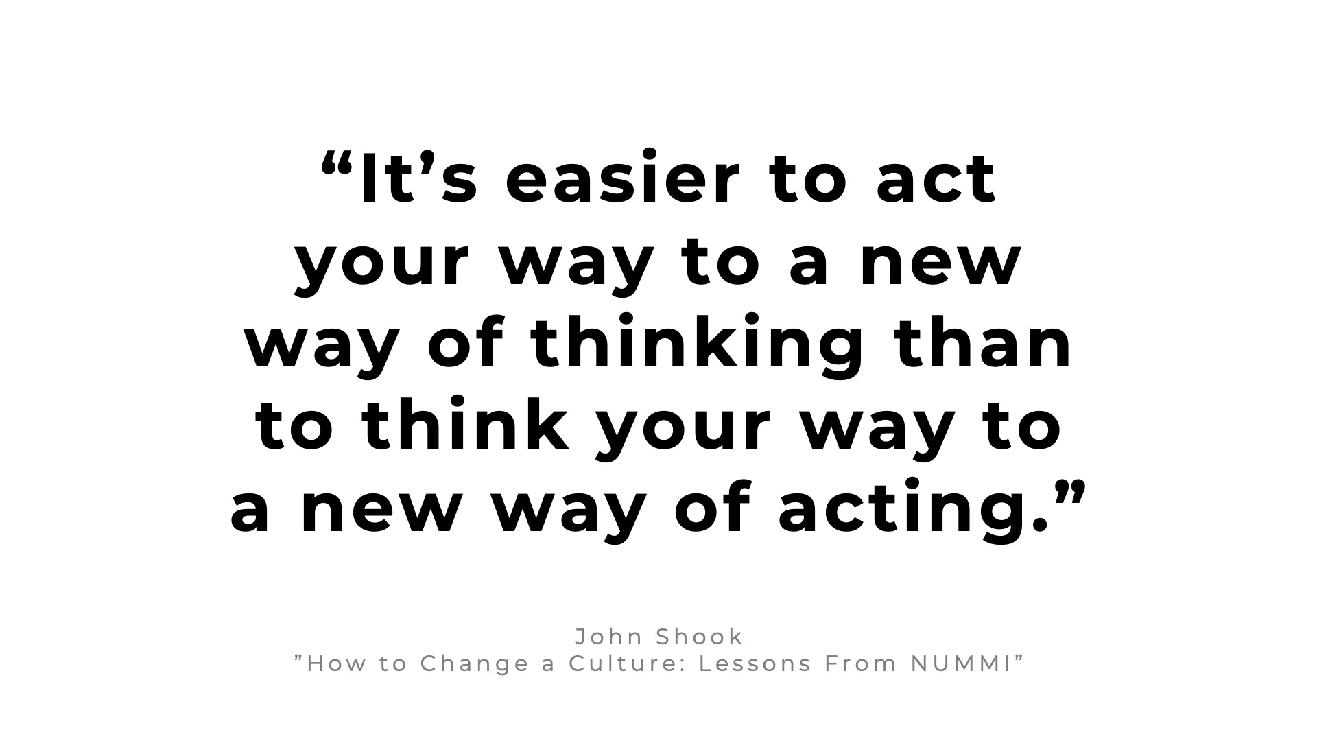“It’s easier to act your way to a new way of thinking than to think your way to a new way of acting.”: SLIDE: Shook quote