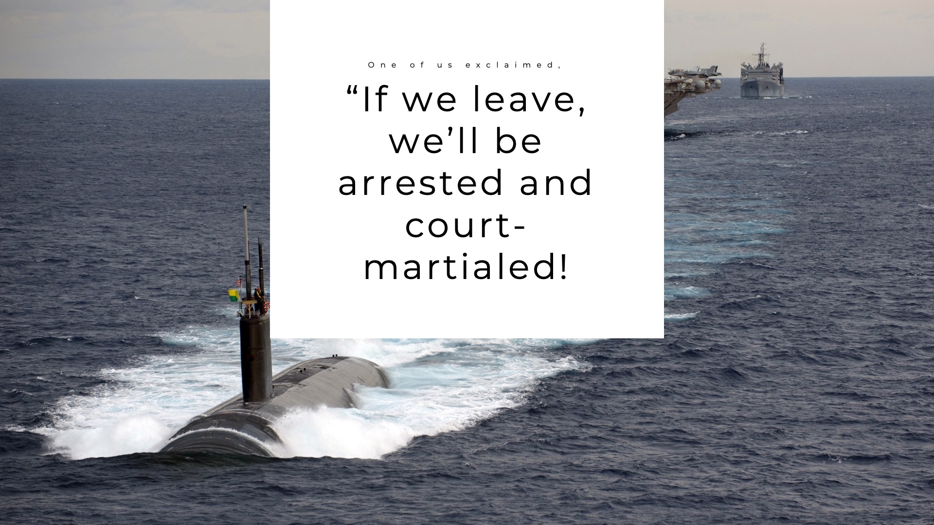 “But,” one of us exclaimed, “If we leave, we’ll be arrested and court-martialed.”: SLIDE: Navy 2