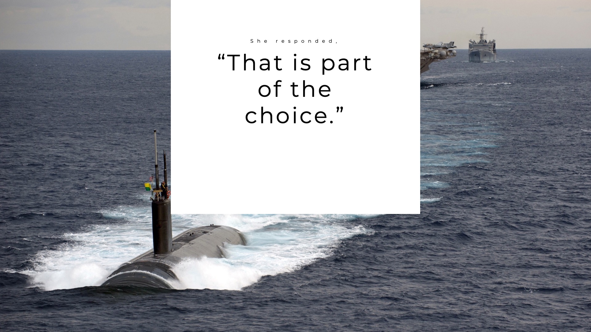 “That,” she responded, “Is part of the choice.”: SLIDE: Navy 3