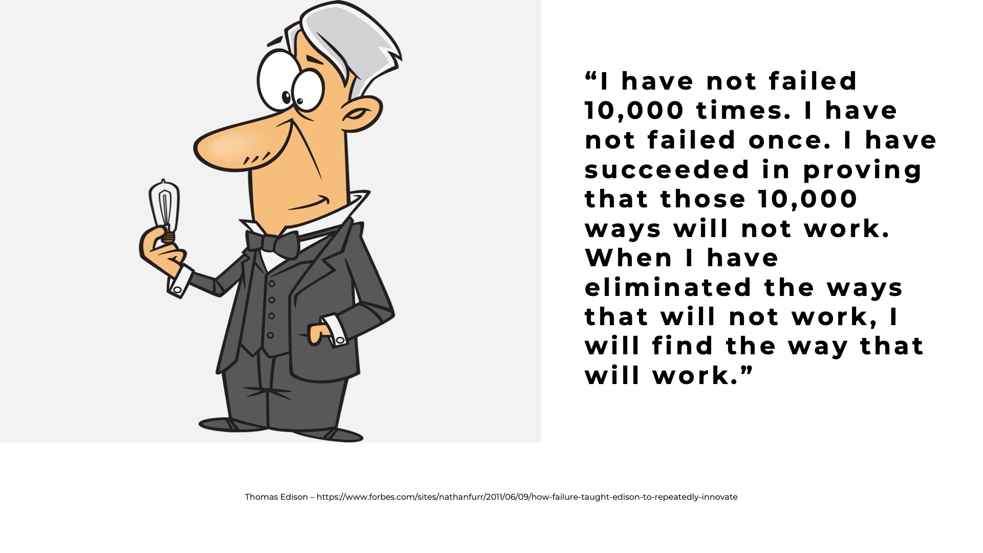 4Furr, N. (2011, June 9). How Failure Taught Edison to Repeatedly Innovate. Retrieved March 30, 2019, from Forbes website: https://www.forbes.com/sites/nathanfurr/2011/06/09/how-failure-taught-edison-to-repeatedly-innovate/